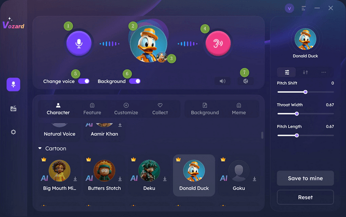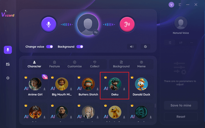 Vozard 不仅让您听起来像 Deku。它还提供了一套其他各种动漫角色的人工智能语音。你可以轻松地将你的声音变成路飞、火影忍者等流行人物和卡通。凭借其灵活的变声选项和无缝的用户体验,可能性是无限的。
