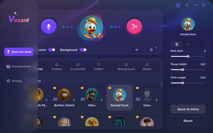 您可以使用其 Deku 语音效果并根据您的喜好进行完全自定义。锦上添花的是其灵活的变声功能。它的实时模式可以让您为各种在线平台改变声音!借助录制模式,您可以为 YouTube 和 TikTok 等平台录制有趣的配音。