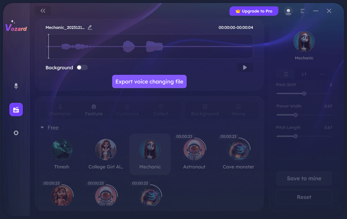 如果您是内容创作者,Vozard 的录制模式将为您带来无限的创造力。用富有创意的配音吸引观众,并让他们一直参与到最后。从听起来像动漫女孩或模仿流行动漫角色,Vozard 充满了可能性。