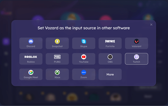 您已经知道如何使用 Vozard 实时改变您的声音。但要在直播平台上使用这款 Deku 变声器,您需要先将其同步。您可以参考此页面,获取有关使用所需应用程序设置 Vozard 的详细指南。
