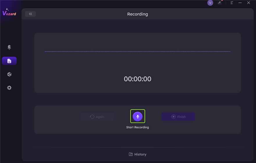 步骤1。配置 Vozard 的音频设置后,单击左侧边栏上的“录制模式”。