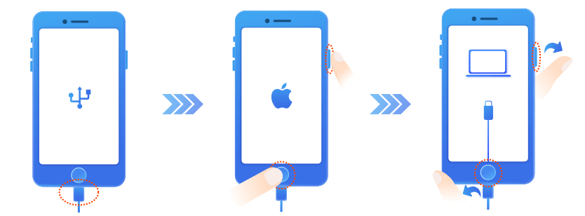 步骤2。按住主页按钮和电源按钮,直到出现恢复模式屏幕。