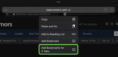 如果您使用的是 iPad,请确保您在 Safari 中打开了几个选项卡,然后只需按住地址栏并选择“为 X 选项卡添加书签”即可。