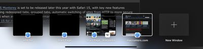 例如,在 iPadOS 上,如果您按住显示选项卡概述按钮(象限中的四个方块)位于 Safari 窗口的右上角,这将显示一个下拉菜单,其中包含一个选项合并所有窗口。