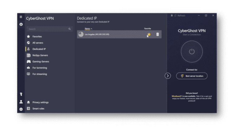 CyberGhost 提供了可靠且经济实惠的专用IP。它对于喜欢流式传输受限内容的人来说尤其完美,因为被列入黑名单的可能性很小。