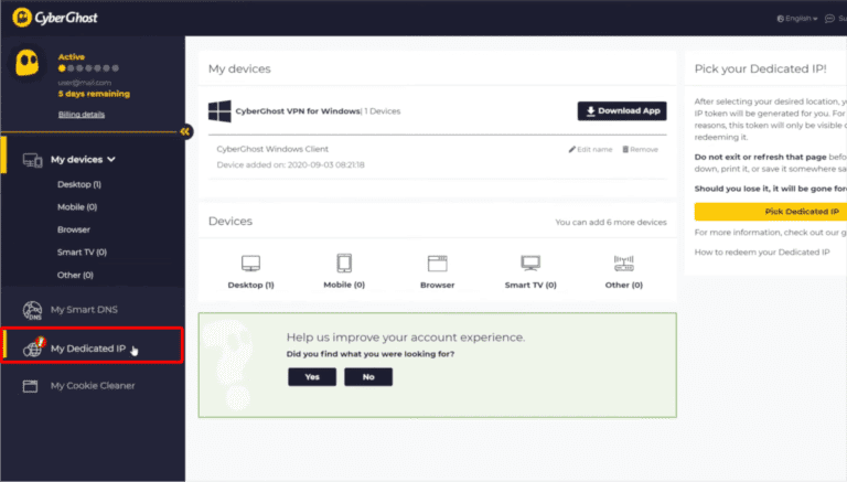 您可以按照以下步骤获取CyberGhost的专用IP: