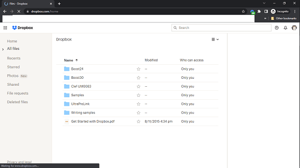 - 您现在可以访问所有 Dropbox 文件和文档。