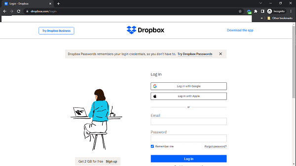 - 打开您的 Dropbox 应用并使用您的帐户凭据登录。