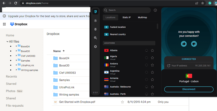 通过 VPN,您可以在 10 分钟内访问您的 Dropbox 帐户和文件。
