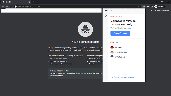 - 选修的– 在浏览器中启动隐身模式。这可以防止 cookie 和缓存干扰解锁过程。