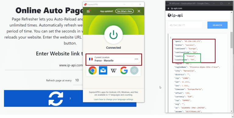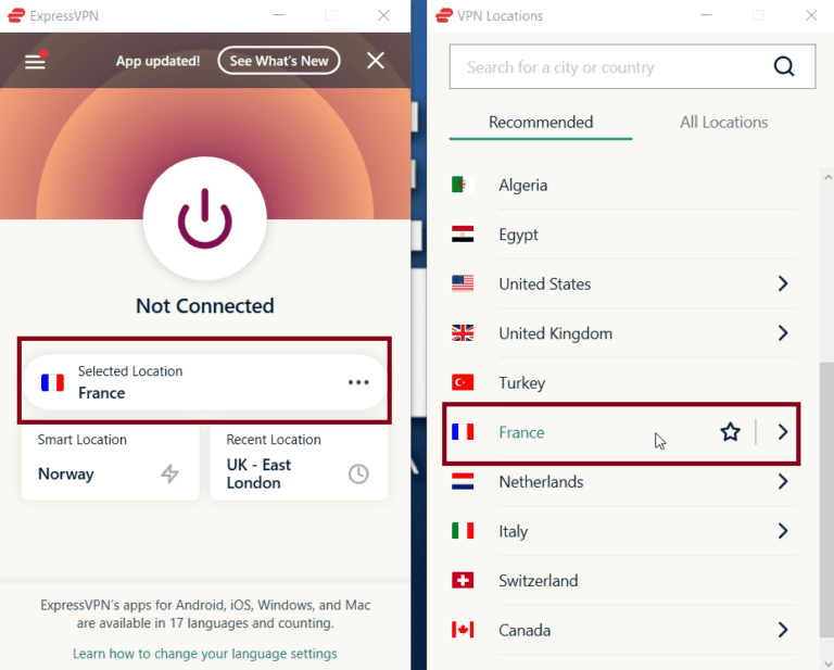 - 连接到 ExpressVPN 服务器。我会用它的法国 – 马赛服务器。