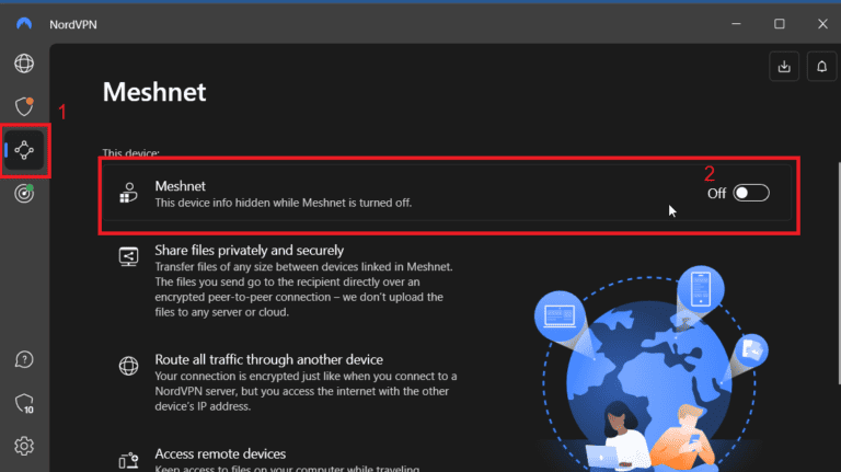 - 在您的设备上启用 Meshnet。