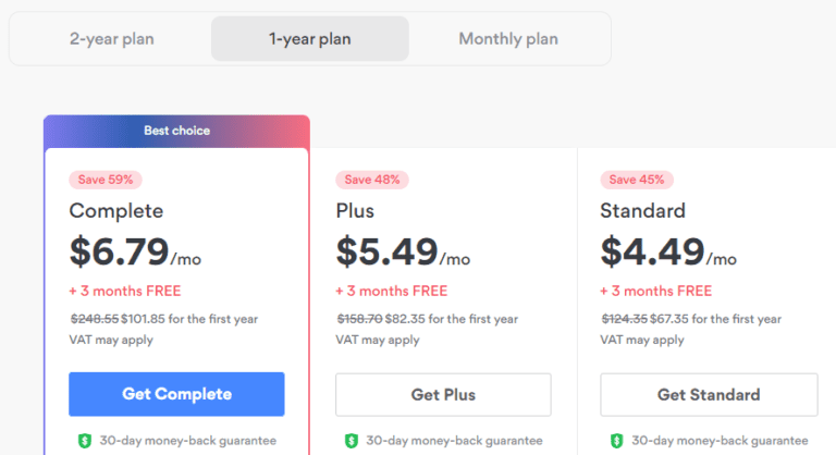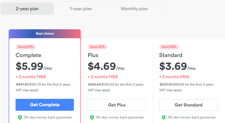 同样,当您购买 2 年计划时,NordVPN 提供三个月免费服务,无论您选择何种级别。