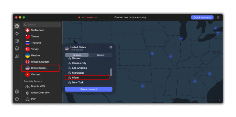 NordVPN 在佛罗里达州工作,如果您想要阳光之州的本地 IP 地址,则在迈阿密有多个 IP 地址。