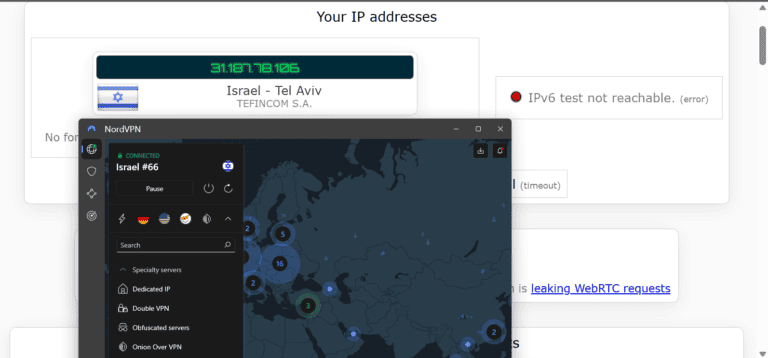 - 通过检查是否存在泄漏来确保您的 NordVPN 连接安全www.ipleak.net。您分配的 NordVPN IP 地址应与泄漏测试站点上的地址匹配。