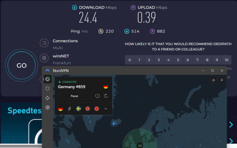 NordVPN 在德国开展工作击败沃达丰和电信速度限制、逃避网络攻击并解锁国际流媒体平台(Hulu US、Disney+)。
