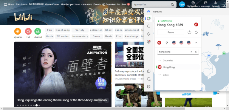 NORDVPN与Bilibili合作良好,可让您在中国以外共享或播放全范围的视频,动画,漫画和游戏。
