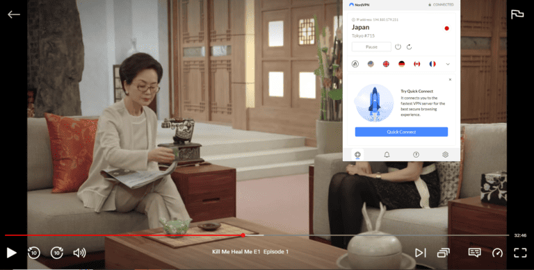 测试时,我连接到 NordVPN东京服务器并毫不费力地观看了“杀了我治愈我” 系列在 Netflix Japan 上播放,没有遇到任何问题。