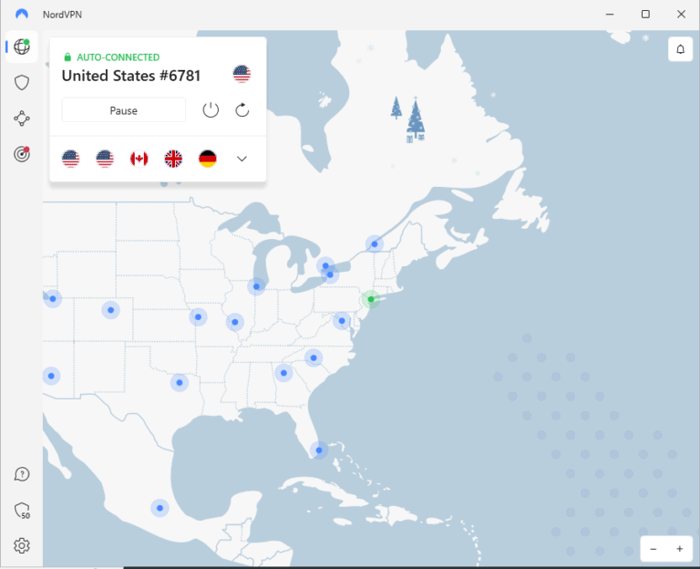 NordVPN 可以使用其广泛的服务器网络绕过 Roobet VPN 检测,其中包括哥斯达黎加、爱尔兰、加拿大、阿根廷和巴西。