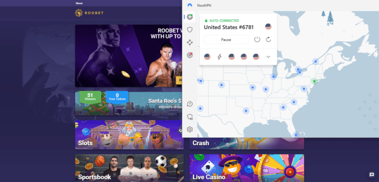 您可以使用 NordVPN 在美国玩 Roobet。要以最佳游戏体验访问 Roobet 游戏,请连接到靠近美国的 VPN 服务器位置。
