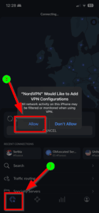 - 轻敲 ”允许”以重新安装 NordVPN 连接配置文件。