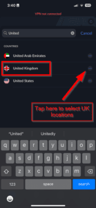 - 转到 NordVPN 主页搜索服务器。我将使用英国服务器对于这个例子。