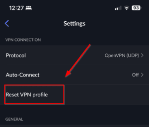 - 轻敲 ”重置 VPN 配置文件”。