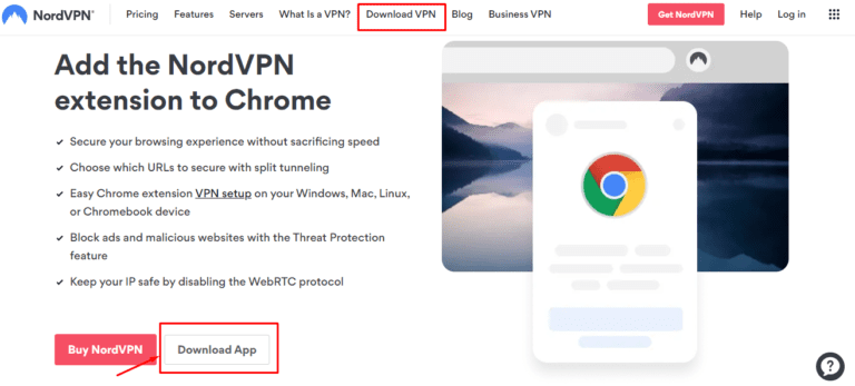 - 在NORDVPN网站上,转到下载VPN>铬合金然后单击“下载应用程序“ 按钮。