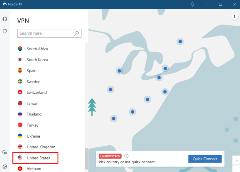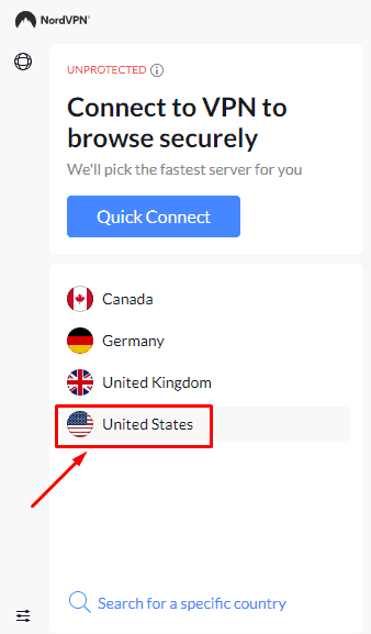 - 转到服务器列表并连接到美国服务器。