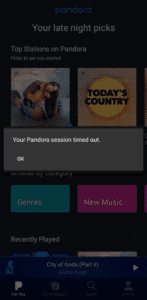 当您断开VPN连接时,会出现“您的Pandora会话超时”。
