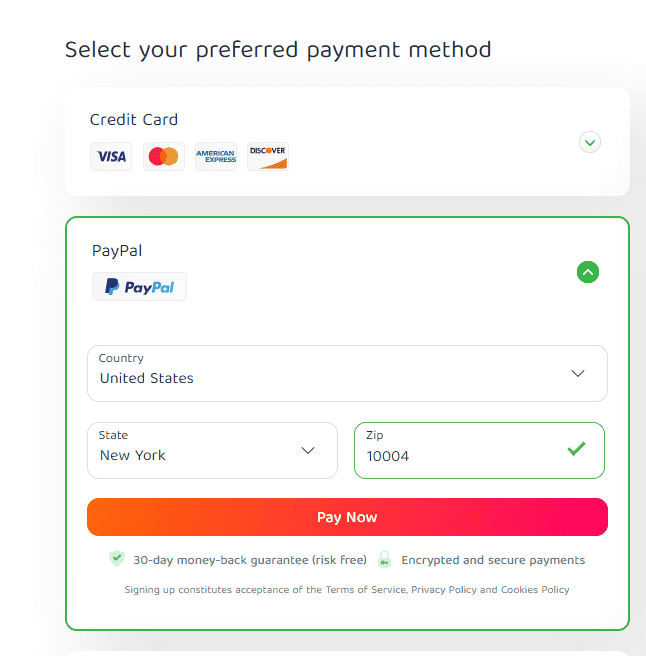 - 选择 PayPal 作为您的付款方式。然后点击“立即付款”。