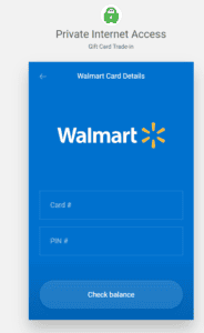 - 查看您的余额和 PIA 的报价并接受条款。例如,如果您的沃尔玛卡上有 50 美元,您将获得一年的 PIA 访问权限。