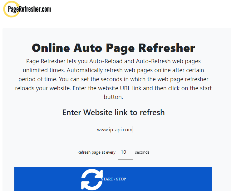 - 访问www.pagerefresher.com在您的网络浏览器中。