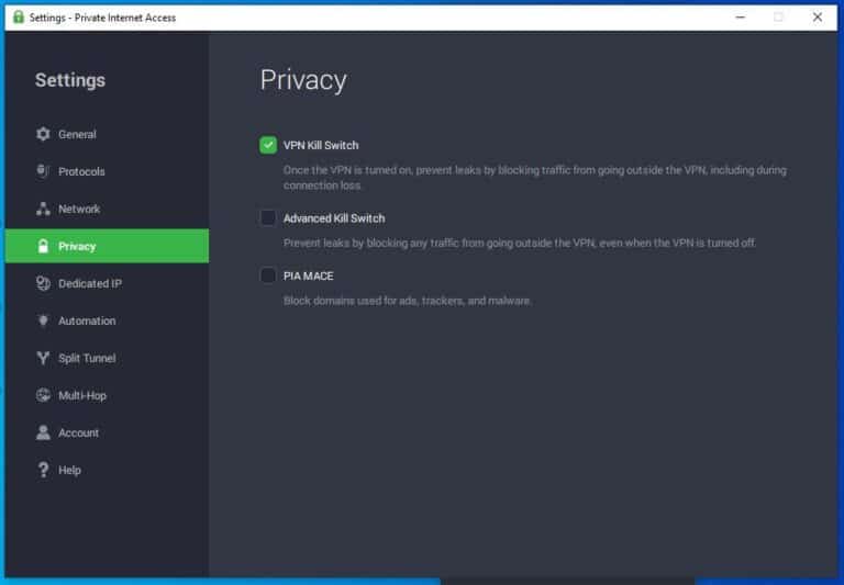是的,私人Internet访问(PIA)带有杀伤开关,您可以在PIA Windows,Mac,iOS或Android应用程序上进行设置。