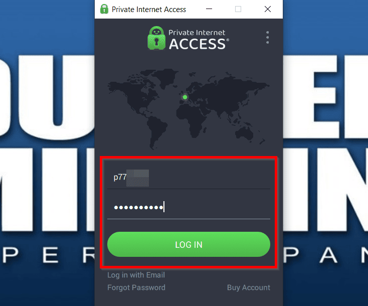 - 启动 PIA VPN 应用程序并使用您的用户名和密码登录。