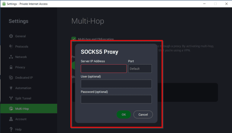 - 填写详细信息,然后单击“好的”。您可以在下面的部分中了解如何获取 SOCKS5 IP 地址。