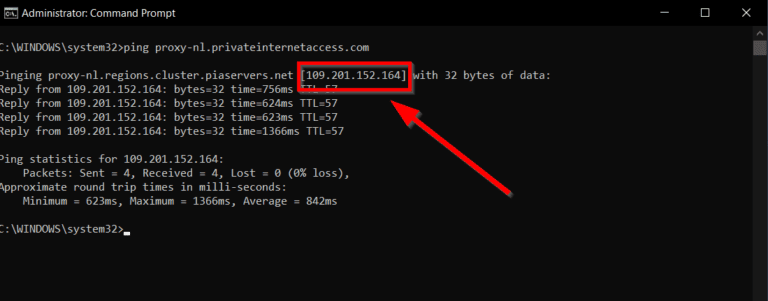 - 进入 ”ping proxy-nl.privateinternetaccess.com” 不带引号。然后,按进入钥匙。