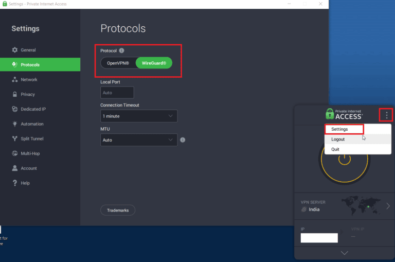 - 经过设置>协议,然后选择“开放VPN”。这是唯一支持混淆的 PIA 协议。