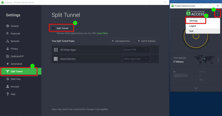 除了选择哪些应用程序和程序通过或绕过 VPN 之外,PIA 还允许您分离 IP 地址以使其不通过 VPN。