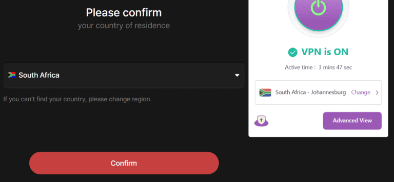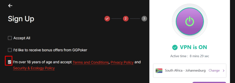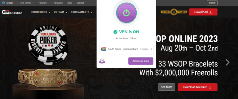 - 连接到 GGPoker 批准的位置(例如南非)的服务器。
