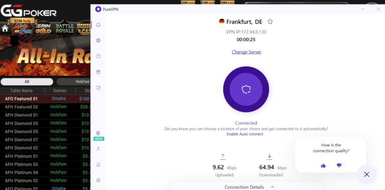 与 NordVPN 和 PureVPN 一样,专用 IP 有助于避免GGPoker因频繁跳台而被封禁。