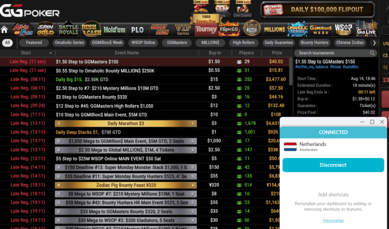 这对 GGPoker 粉丝来说是一个游戏规则改变者,因为您可以绕过地理限制在部分地区我们,阿联酋,亚洲, 和欧洲同时添加一层安全您的投注活动。
