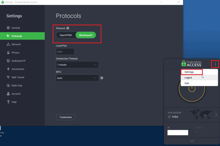 - 点击 ”协议”并启用“线人。”这确保了比OpenVPN更快的速度,可以在任何地方取消遮挡纽约洋基和其他非Penn运动队的比赛。