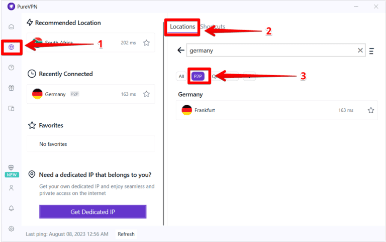 以下是如何使用 PureVPN 获取德国 IP 地址: