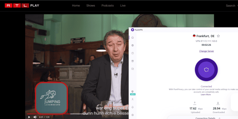 例如,如果您想要解锁仅在德国提供的内容(例如 RTL 和 Kabel1.de),那么法兰克福服务器将是理想的选择。虽然您也可以在不使用 VPN 的情况下解锁德国内容,但使用 PureVPN 可确保恶意网络上的互联网活动安全,而不会丢失本地内容。