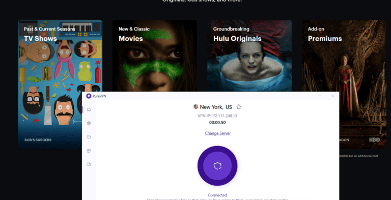 - 通过连接 PureVPN,在 Hulu 上安全地冲浪和解锁内容,ABC视窗和来自德国的 BBC iPlayer 或通过公共 Wi-Fi 安全访问您的 DekaBank 帐户。