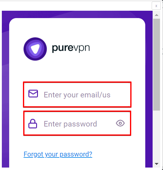 - 使用您的电子邮件/用户名和密码登录 PureVPN Windows 应用程序。