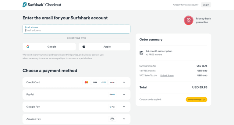 确保检查这些很棒的Surfshark VPN 优惠在您注册之前!