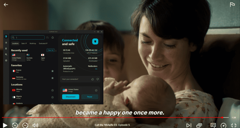 Surfshark 的伊利诺伊州服务器速度足够快,可以流式传输电影、网络连续剧以及观看本地新闻高分辨率。