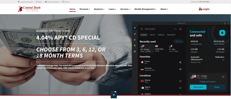 您甚至可以通过任何公共 Wi-Fi 安全访问您的伊利诺伊州中央银行银行账户。